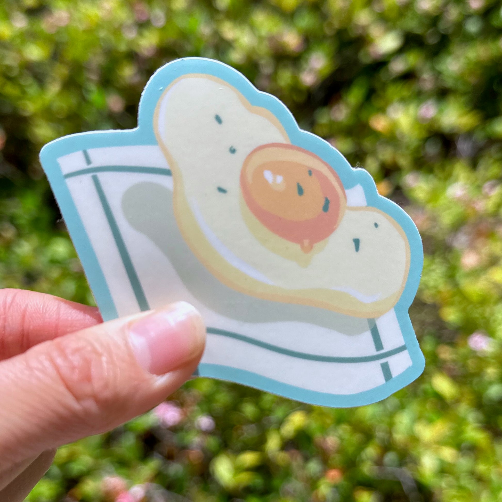 This sticker is a cut-out design featuring mouth-watering cuisine from the Mondstadt region in Genshin. Created with tough vinyl and a UV-protective laminate, it's resistant to scratches, rain, and sunshine. (Bon Appetit!)