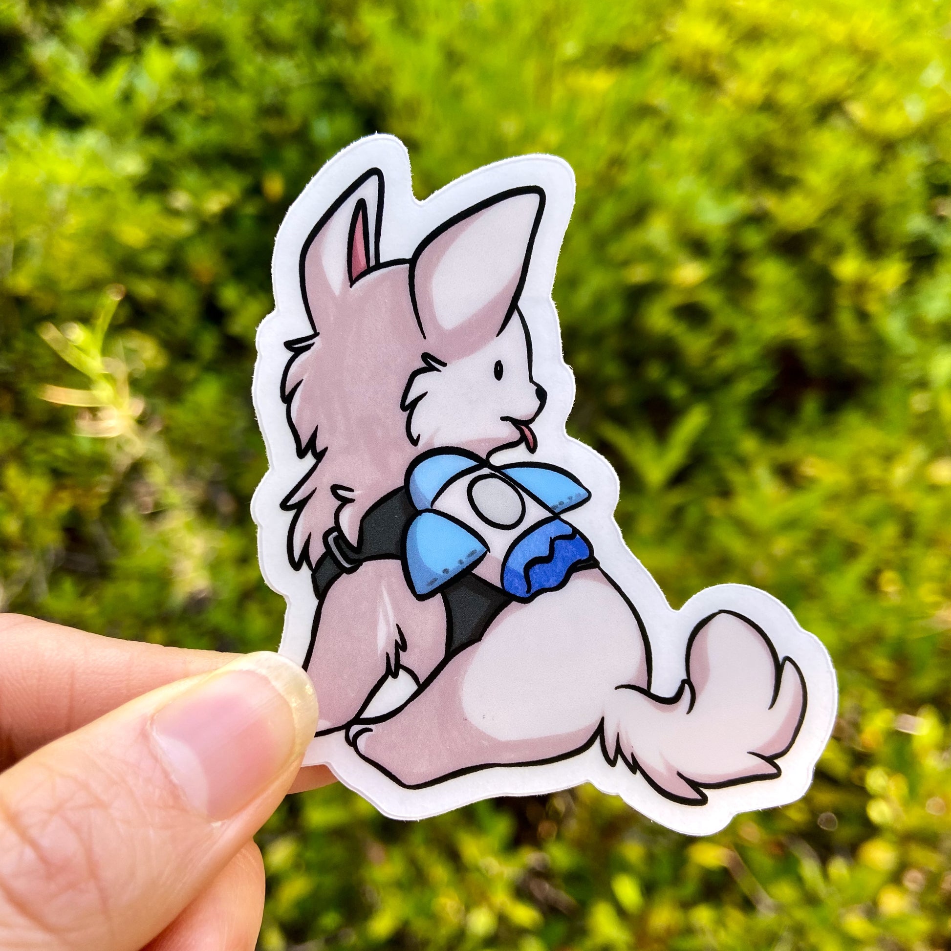 Die-cut clear sticker with a removable adhesive featuring Asta's puppy Peppy from Honkai Star Rail. Made with a thick, durable vinyl with a UV laminate that protects from scratching, rain and sunlight.
